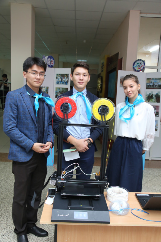 На мероприятии также присутствовали ученики и других школ. Они представляли группу активистов республиканского штаба единой детско-юношеской организации "Жас улан"и продемонстрировали проект - 3D-принтер. "В этом принтере используются пластиковые нитки, которые были сделаны из переработанного пластика! С помощью моделирования на компьютере мы можем создавать самые разные изделия из пластмассы", - рассказал ученик школы № 54 Дихан Рамазанов.