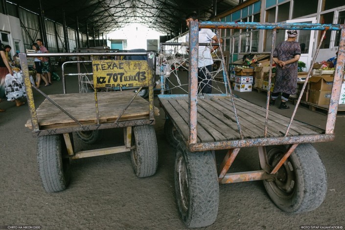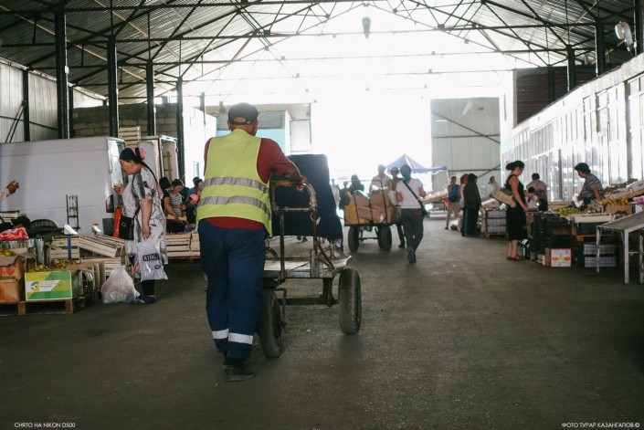 "Приехал с семьей из аула, из Сайрамского района ЮКО, в поисках работы. Вот у сына свадьба скоро, надо деньги поднакопить. На рынке работаю около шести лет. Мне самому 54 года. Есть и постарше грузчики. Вот одному из них недавно 71 год исполнился. Отметили в своем кругу, по 1 000 тенге скинулись и поздравили", - рассказал наш герой и ушел работать.