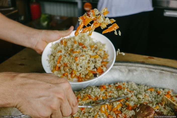 Наш фотограф, разбирающийся не хуже настоящих гурманов узбекской кухни, оценил плов следующими словами: "Вкусно, но на юге вкуснее". Про плов в Южном Казахстане можно почитать в предыдущих материалах коллег.