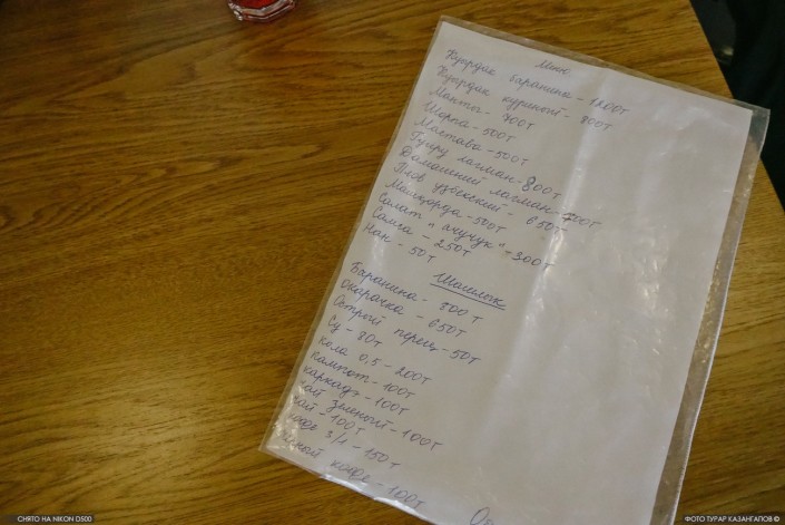 Меню заведения оказалось простым и без излишеств.