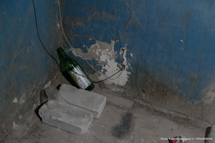 Стены обшарпаны, исписаны, всюду мусор и паутина.