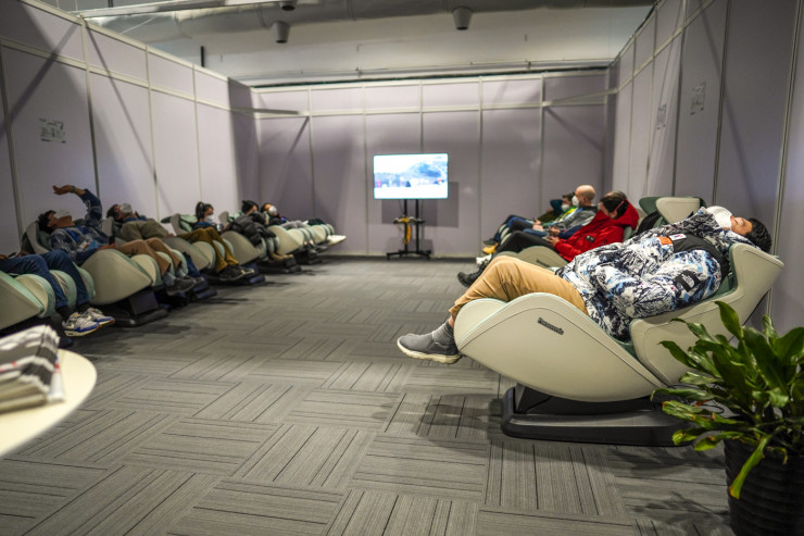 Специальные релакс-комнаты с массажными креслами, спальные кабинки для самого комфортного сна и отдыха.
