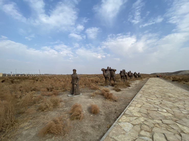 Верблюды - символ Шелкового пути. Если в Санкт-Петербурге много скульптур львов, олицетворяющих силу и мощь тогда еще имперской России, то в Туркестанской области очень много скульптур кораблей пустыни.