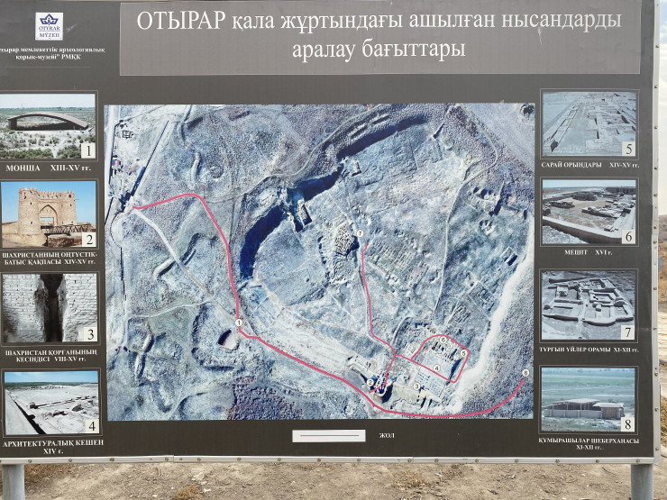 Начали мы с города Отырар (старое название - Тарбанд, Турарбанд, Турар, Фараб). Отырар - это один из древнейших городов, располагавшихся на Великом шелковом пути до монгольского нашествия, являвшийся одним из самых крупных в Центральной Азии. С 2004 года здесь действует государственная программа "Возрождение древнего Отырара". На данный момент идет работа по сохранению руин и реставрация некоторых сооружений.