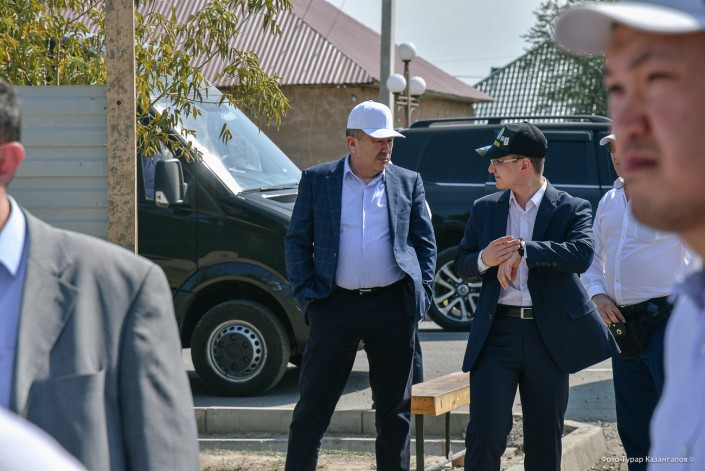 Аким Нур-Султана Алтай Кульгинов. Кстати, может появиться вопрос, что он делает в Туркестанской области. За строительство и ремонт на каждом участке отвечает какой-нибудь регион Казахстана. Есть в Арысе объекты, которые восстанавливает акимат столицы.