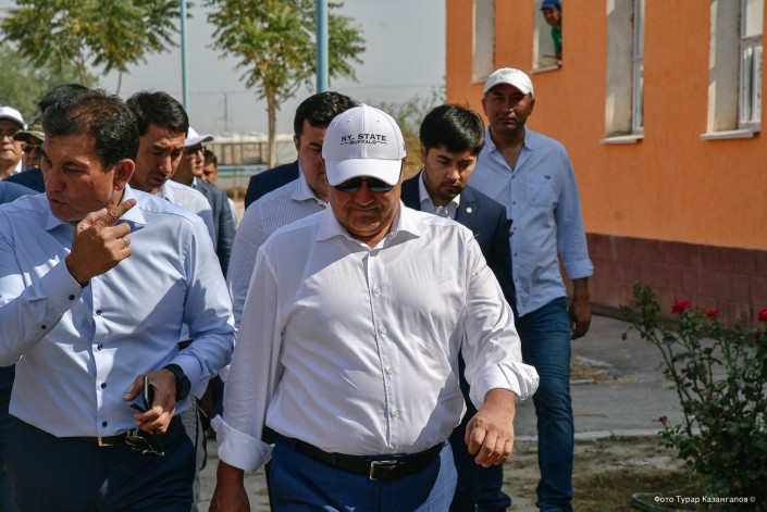 Премьер с министрами садятся в микроавтобус и уезжают дальше - в город Туркестан. Там им будет еще жарче.