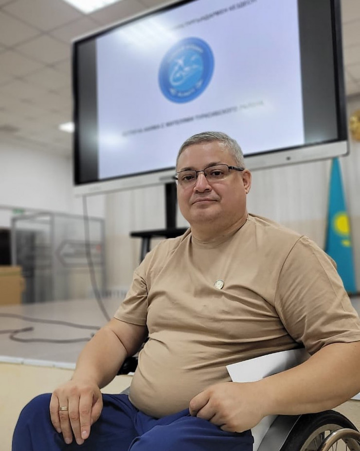 Наш герой - амбассадор "Алматы марафона". С 2016 года он ежегодно преодолевает полную марафонскую дистанцию (42,2 километра) в инвалидной коляске.