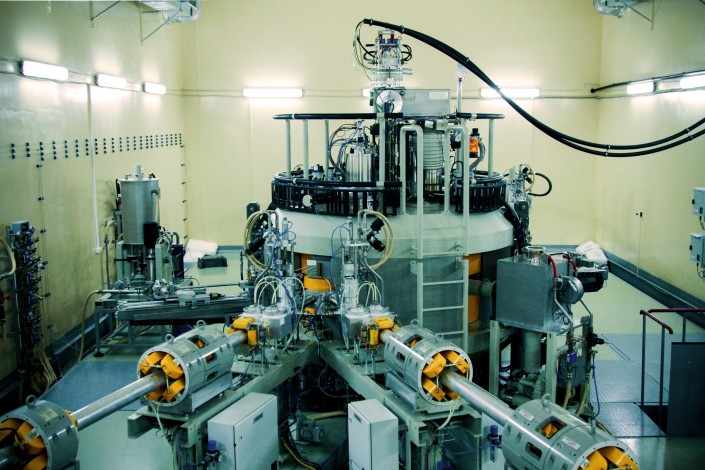 Александр показывает нам генератор изотопов - циклотрон. Установка находится в бункере. Чтобы попасть туда, мы почти минуту ждем, пока автоматически откроется огромная дверь весом четыре тонны и шириной 2,5 метра. В день ее по необходимости открывают пять-шесть раз.