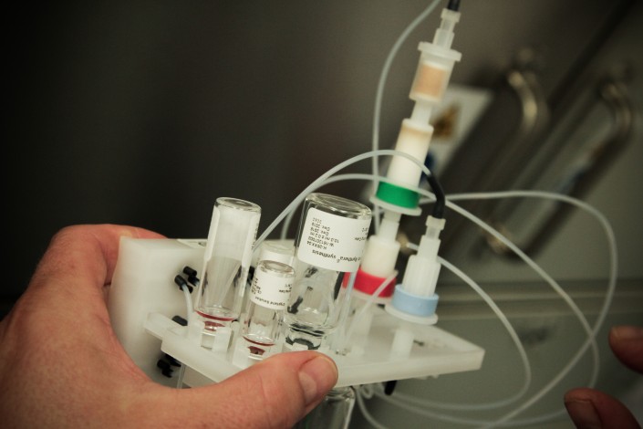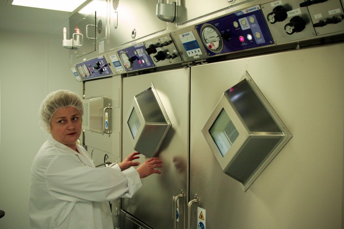 В "горячих" камерах выполняется смыв с пластин с изотопами. Конечный продукт, который будет поставлен в медцентр, это раствор. Он будет упакован в небольшой стеклянный флакон, который транспортируется в специальной герметичной капсуле.