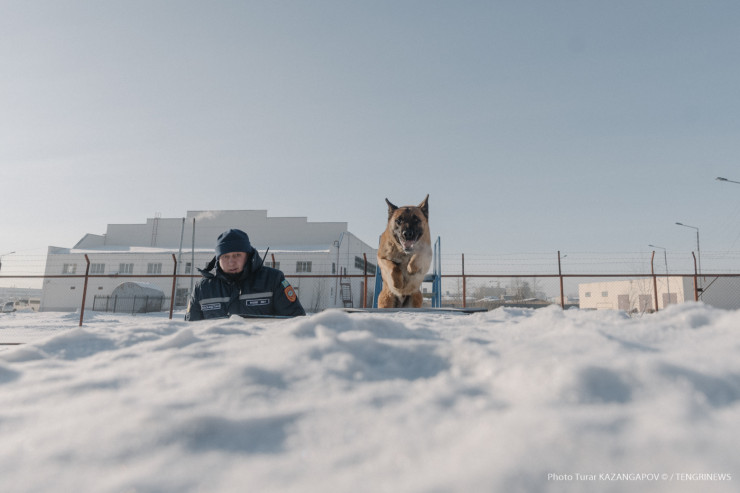 Айк - помесь немецкой и бельгийской овчарки, ему три года. Воспитывает его кинолог Данияр Жусупов.