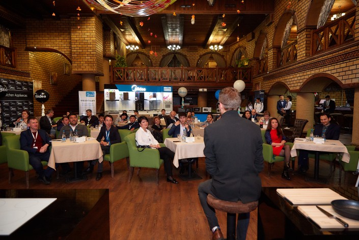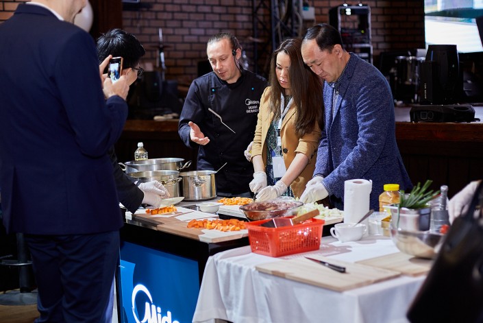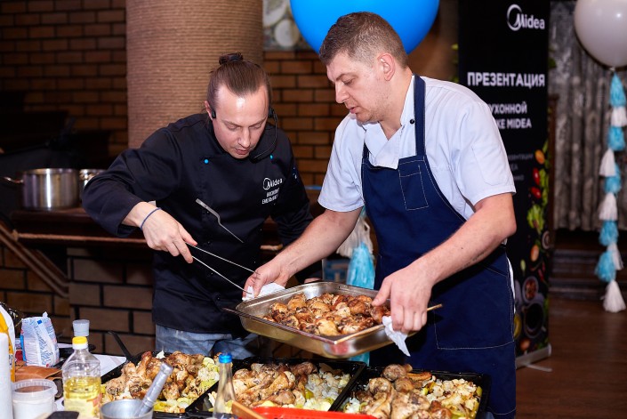 В программу двухдневной презентации, проходившей в стенах ресторана "ATLAS", вошел кулинарный поединок с участием Василия Емельяненко, который наглядно продемонстрировал преимущества использования новыми продуктами компании "Midea" в повседневной жизни.