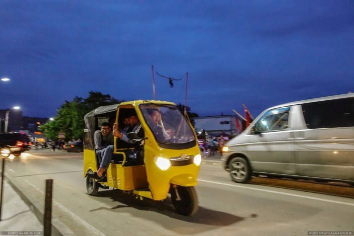 В Боровом наступает ночь. Жизнь в поселке кипит, и при виде людей, катающихся на моторикше, может на минуту показаться, что находишься где-то за пределами Казахстана.