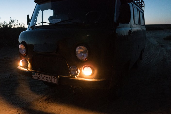 В тот же вечер у нашего лагеря остановился автомобиль. Ехали они из Казалинска (Кызылординская область), направлялись как раз к тем же распиленным кораблям. На вопрос, что за люди там работают, водитель ответил, что это его люди.