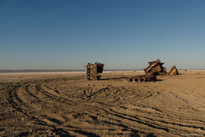 "В свой первый раз на Арале в 2016 году мы успели посетить два из трех имевшихся на тот момент в казахстанской части "кладбищ" кораблей: в Жаланаше (самое близкое к Аральску) и на берегу залива (теперь уже озера) Тущыбас", - поделился с нами один из участников экспедиции, путешественник Виталий Шуптар.