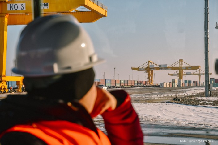 В этом месте принимают груз из Китая и отправляют его через Казахстан в Европу.