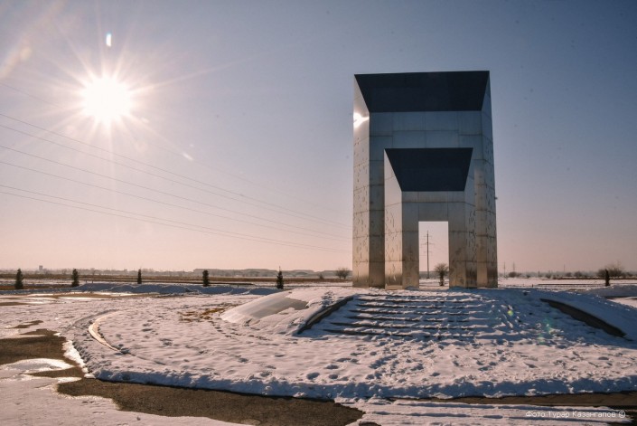 В пути слушаем радио. Из динамиков доносится лирическая протяжная песня на китайском языке. Так ощущается близость к китайской границе. На этом, собственно, какие-то видимые отличительные особенности такой близости и заканчиваются. Но, помимо того самого центра шопинга "Хоргос", в этой местности есть еще одна достопримечательность.