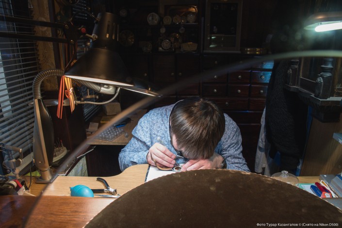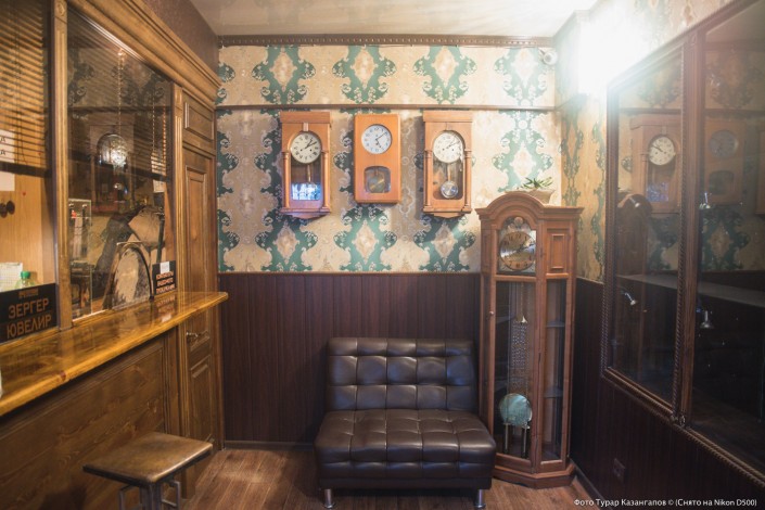 Мастерская работает с 2012 года. И надо отметить, что она выделяется своим неповторимым стилем. "Вот если бы вы к нам ровно в 12 зашли, тут как в Кремле все часы начинают бить", - увлеченно говорит Дмитрий.
