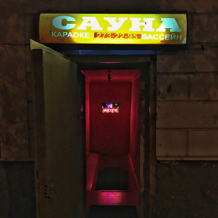 Судя по надписи, здесь расположен целый досуговый центр, как говорится, три в одном - сауна, караоке и бассейн.