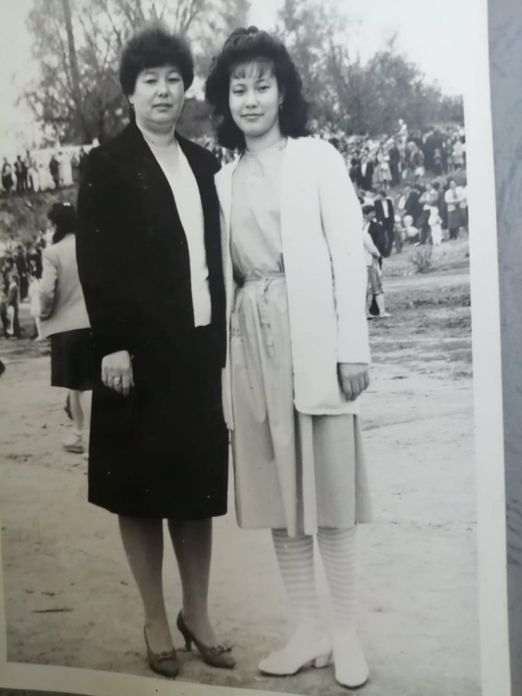 Фото: праздник 1 мая, стадион поселка Боралдай, мама и бабушка Асем, из архива Асем Абдуллиной