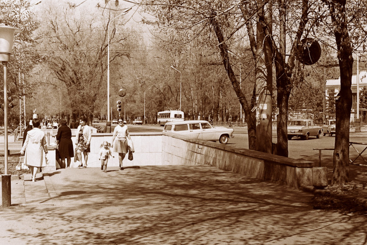 Мына балақайлардың артындағы адамдардың кезегін байқаған боларсыздар. Ол "Қазақстан" кинотеатрына кіруге кезекке тұрған адамдар. Ол заманда киноға кіру үшін ұзын-сонар кезекте тұру керек болатын.