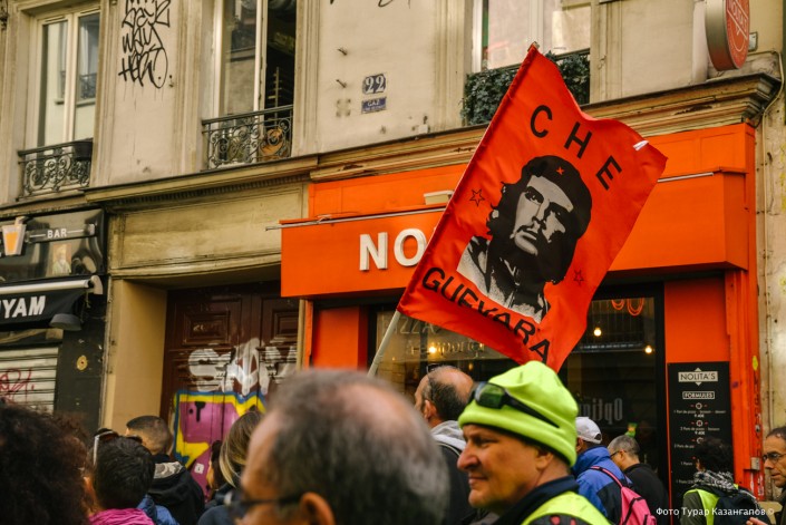 Участники акции несли с собой самые разные флаги. Были среди них и сторонники Че Гевары.