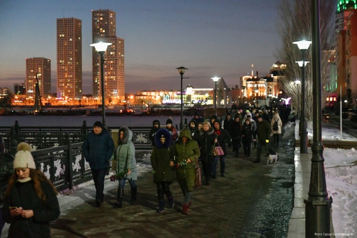 Никто возражать не стал. Так началось траурное шествие жителей Астаны по набережной реки Есиль до здания российского посольства.