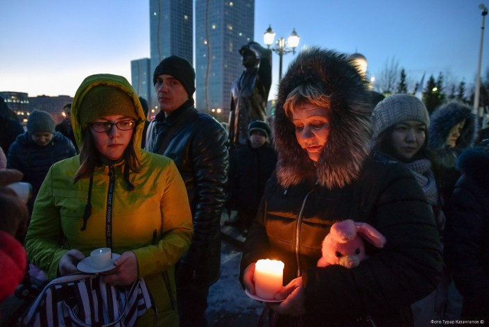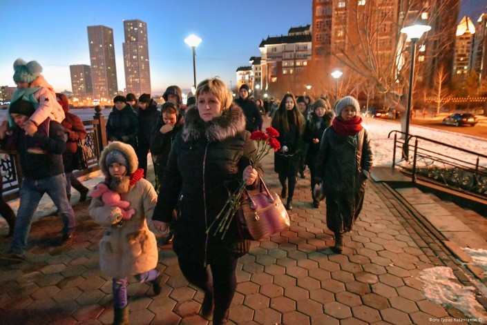 Люди разных возрастов, абсолютно разных национальностей и может быть разных убеждений решили прийти к посольству Российской Федерации в Астане, чтобы почтить память погибших при пожаре в ТРЦ в Кемерово. Ответ на вопрос, что их побудило прийти в этот не самый теплый мартовский вечер к месту общего сбора, был найден нами почти сразу. Две женщины - одна средних лет, другая постарше говорили про безопасность в торговых центрах столицы. "Да, все мы ходим в торгово-развлекательные центры. Именно поэтому все мы в этот день здесь", - читалось в глазах пришедших бабушек и дедушек, мам и пап, сыновей и дочерей. Как в Астане прошло организованное шествие в память о людях, погибших при пожаре в российском городе, - в репортаже Рената Ташкинбаева и Турара Казангапова.