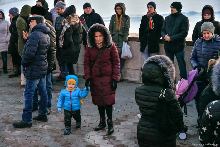 На набережной можно было заметить дежуривших сотрудников полиции. Никто из них до определенного момента никак не вмешивался в происходящее.