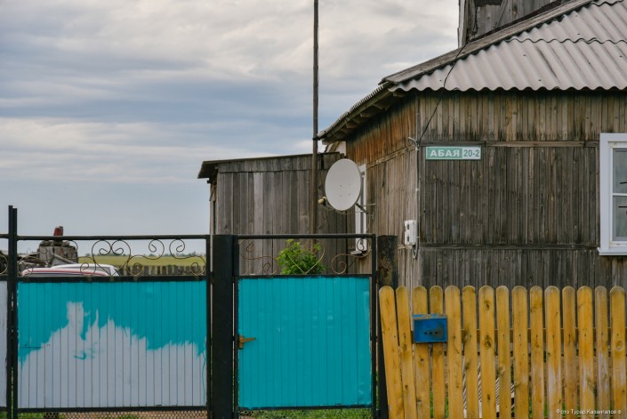 Первое, на что обращаем внимание при въезде в село, - надпись "Добро пожаловать" на казахском - "Қош келдіңіздер", а также указатель "Улица Абая".