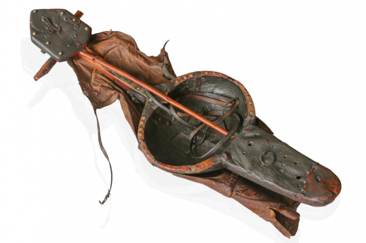 Время и моль сделали свое дело - струн нет, а обтянутая кожей нижняя часть кобыза заметно потрепана.