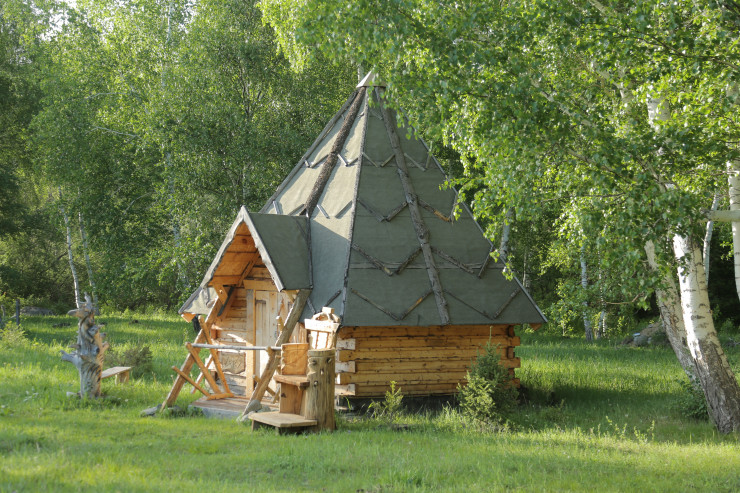 Теперь алматинец живет в этот деревянном доме в окружении природы.