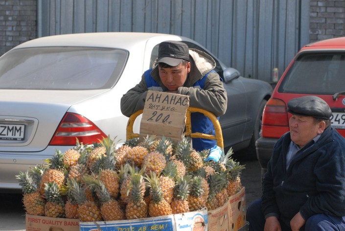 16.03.2007. Продавец ананасов на парковке у барахолки