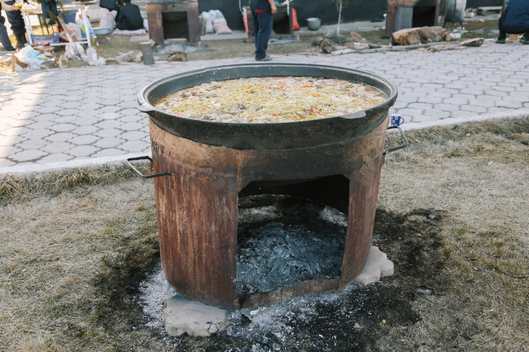 Смотря на этот большой казан с горячим блюдом, хочется верить, что все соберутся за круглым дастарханом и, может быть, впервые за эти дни спокойно поужинают.