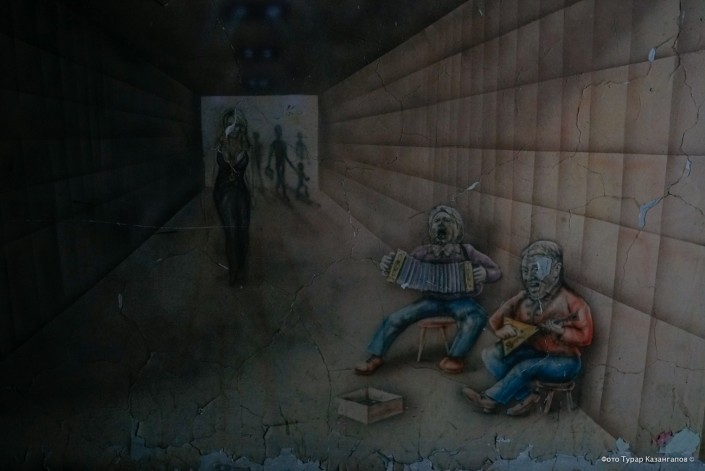 Чуть позже нам рассказали, что это часть экспозиции, оставшейся от "Ночи в музее", которую проводил областной историко-краеведческий музей. Его подвал был переоборудован в очень правдоподобные следственный изолятор и тюрьму НКВД. Как отмечают местные, в реальности такой объект находился в другом здании.