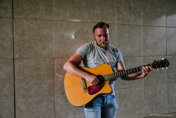 "Пишу музыку, выступаю. Иногда, когда есть настроение, выбираюсь попеть в переходе для души. Это как хобби, для удовольствия. Город свой люблю", - сказал Константин и спел на этот раз лирическую песню собственного сочинения.