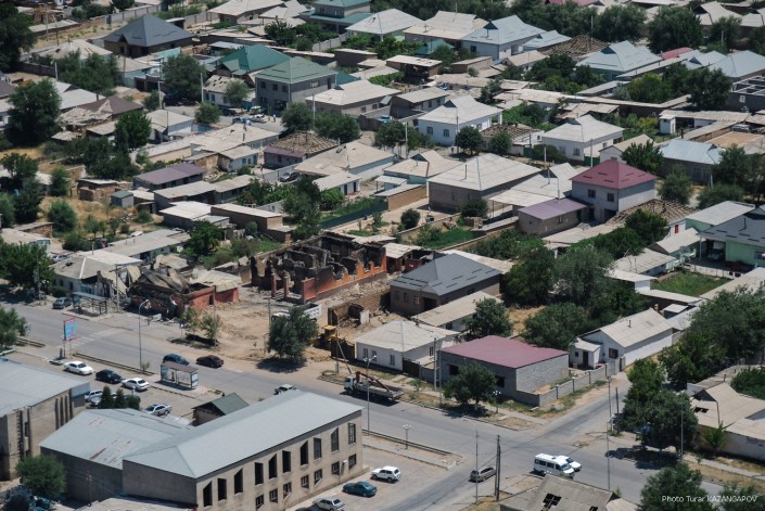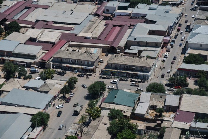 Даже в центре Арыси много разрушенных зданий. На фото часть города, где расположены базар и торговые комплексы.
