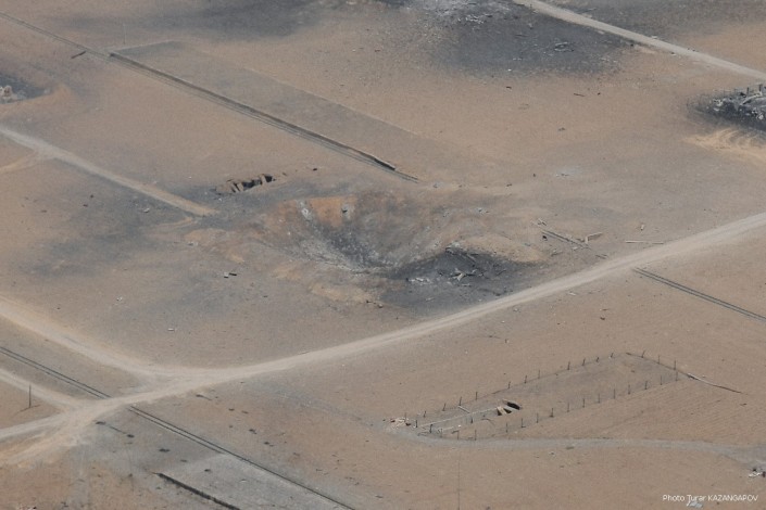 Но жертв и разрушений могло быть и больше, если бы разрушительная взрывная волна и разброс боеприпасов не направились в степь. Черные участки на снимке выше - места падения снарядов.