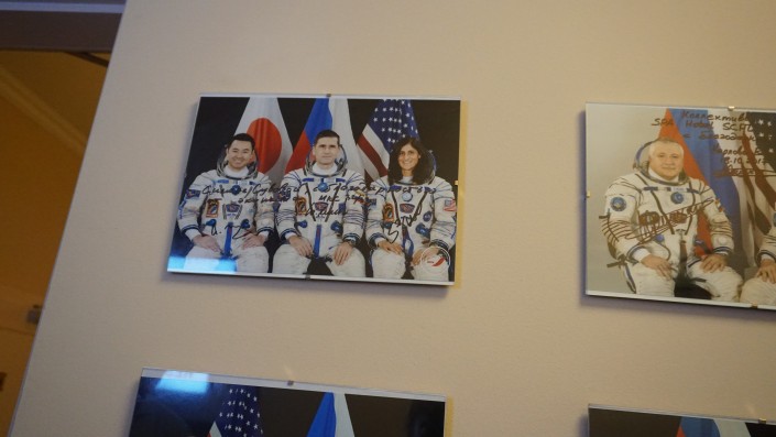 Здесь же висит и фотография казахстанца Айдына Аимбетова, он вместе с другими членами экипажа прибыл сюда после полета в космос в 2015 году.