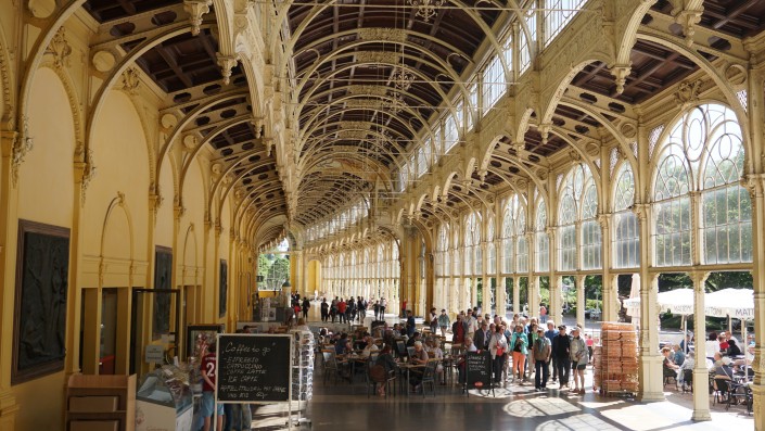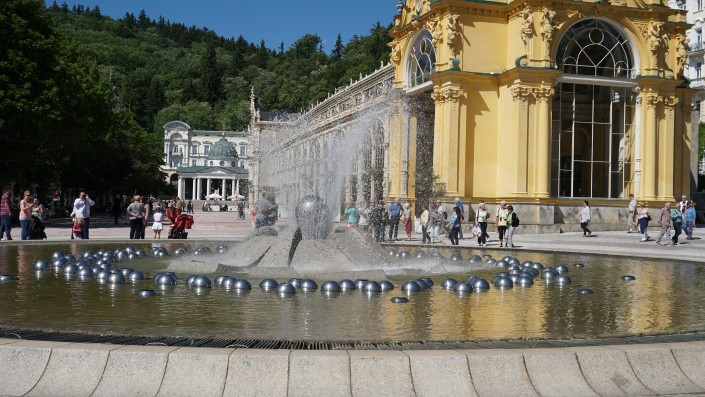 Еще один небольшой курорт в 40 минутах от Карловых Вар - Марианские Лазне (Мариенбад в прошлом). Туристы здесь неспешно прогуливаются вдоль колоннады, попивая целебную воду из своих кружек.