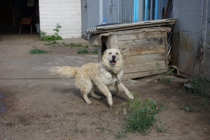 Собака Владимира Ивановича, завидев чужака, начинает лаять. "Умка - пес умный", - говорит хозяин и в благодарность за преданное служение поливает своего любимца из лейки.