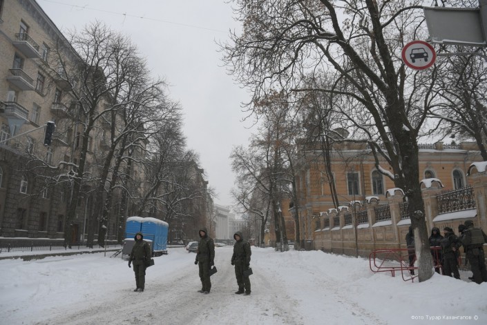 Местами в столице Украины можно заметить вооруженных людей в военной форме.