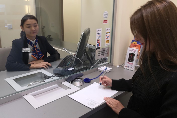Татьяна решила воспользоваться одной из возможностей своей новой карточки, что называется "не отходя от кассы". Точнее, чуть отойдя от нее. Они с Русланом пошли к зоне банкоматов в отделении, чтобы девушка смогла сделать перевод на карту другого банка. Кстати, комиссия составила 0 тенге (при переводе до 60 тысяч тенге).