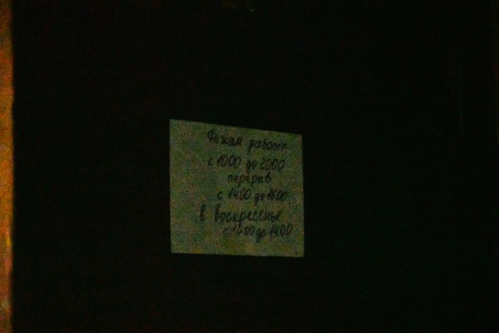 В подъезде можно увидеть объявление о сходе жильцов, на котором обсуждался вопрос аварийного состояния дома.