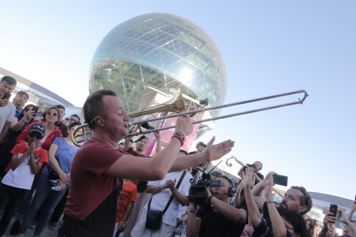 Фестиваль этого года прошел на территории EXPO у подножия сферы "Нур-Алем" на левом берегу столицы. Летняя сцена отбрасывала просторную тень, фонтаны неподалеку веяли прохладой.
