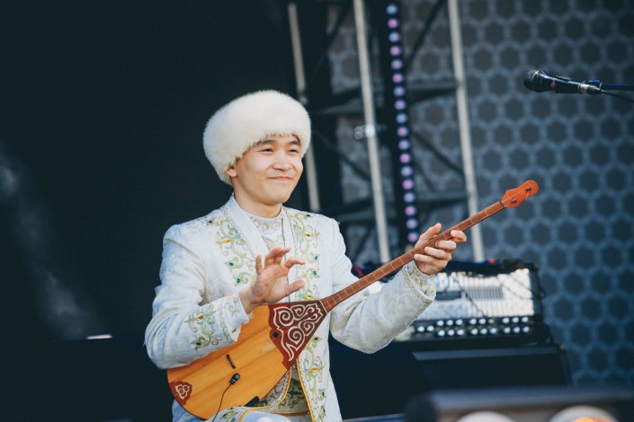 Первый день фестиваля открыли казахстанские домбристы. За ними - группа Ashina. Музыканты играли на сыбызгы, домбре, шанкобызе, кыл-кобызе, а также сочетали гитару, бас и ударные с горловым пением.