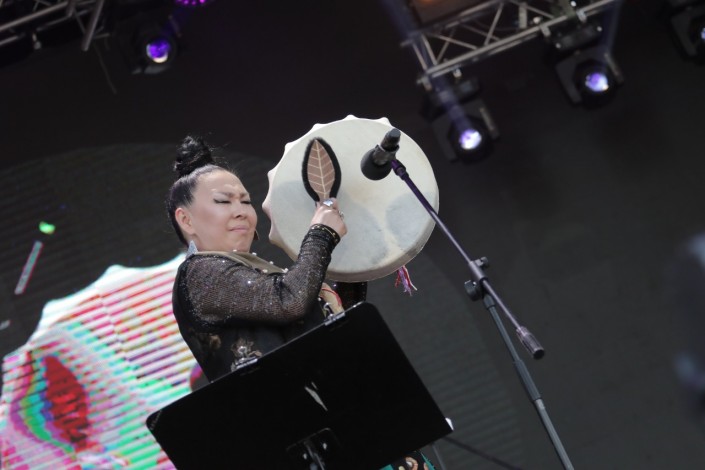 Как и большинство исполнителей фестиваля, Чылтыс - мультиинструменталист. Она обладает редким даром женского горлового пения, а также играет на барабане, варгане и на шорийском варианте домбры.