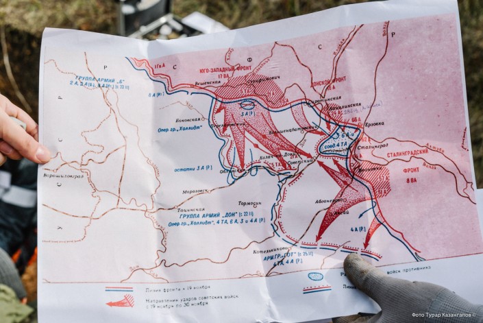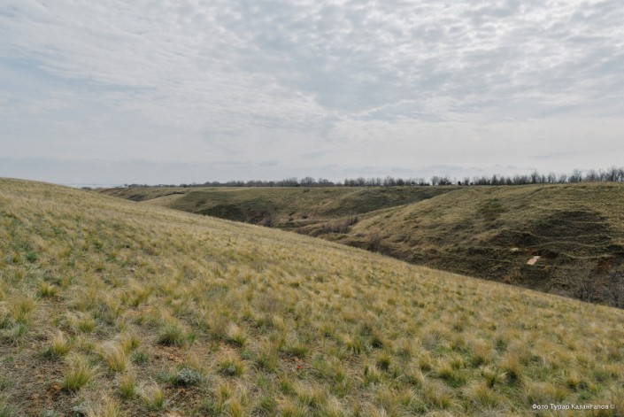 "Это Городищенский район, балка Татаркина. Мы находимся между двумя поселками - Ерзовка и Орловка. Здесь стояла армия, которая не дала пробиться врагу. Немцы хотели обойти Сталинград со стороны и соединиться со другой армией. Это им не удалось. Советская армия четыре месяца сдерживала и атаковала немцев, и к январю 1943 года они окружили армию Паулюса (немецкий военачальник) и разгромили ее", - рассказывает Шитов.