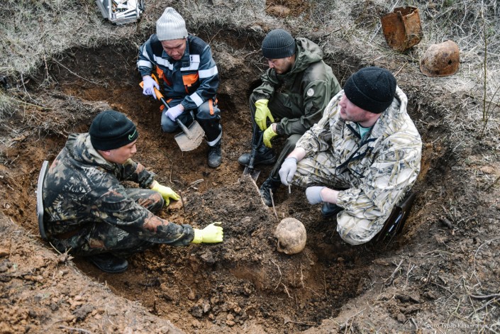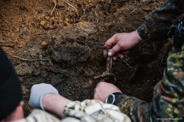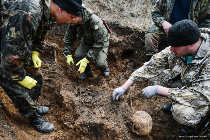 "Когда я начинал этим заниматься, мне отец сказал: "Неважно найдешь ли своего дядю, моего брата, или нет, найди любого бойца и это будет максимум, что ты можешь сделать, чтобы увековечить память". Поэтому на каждого из нас незабываемый отпечаток накладывается, и чувствуешь, что жизнь не зря прожита. Они свой долг чести выполнили, а мы им возвращаем", - говорит поисковик из Павлодара, сотрудник Казахстанского электролизного завода Саят Кусаинов.