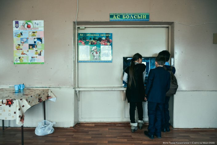 Столовая местной школы. Прозвенел звонок, и ученики выстраиваются в очередь за обедом.