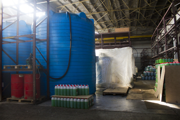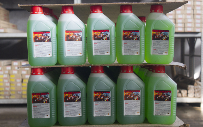 Из основной установки расщепленные фракции поступают на линию розлива. Их дозировка зависит от температуры замерзания антифриза. Чем более стойкий антифриз к холоду, тем лучше его качество. Соответственно, на него больше уходит сырья, а значит, и его цена выше. Суанбаев пояснил, что их продукция гораздо дешевле аналогов, а температуру выдерживает 35 градусов мороза.